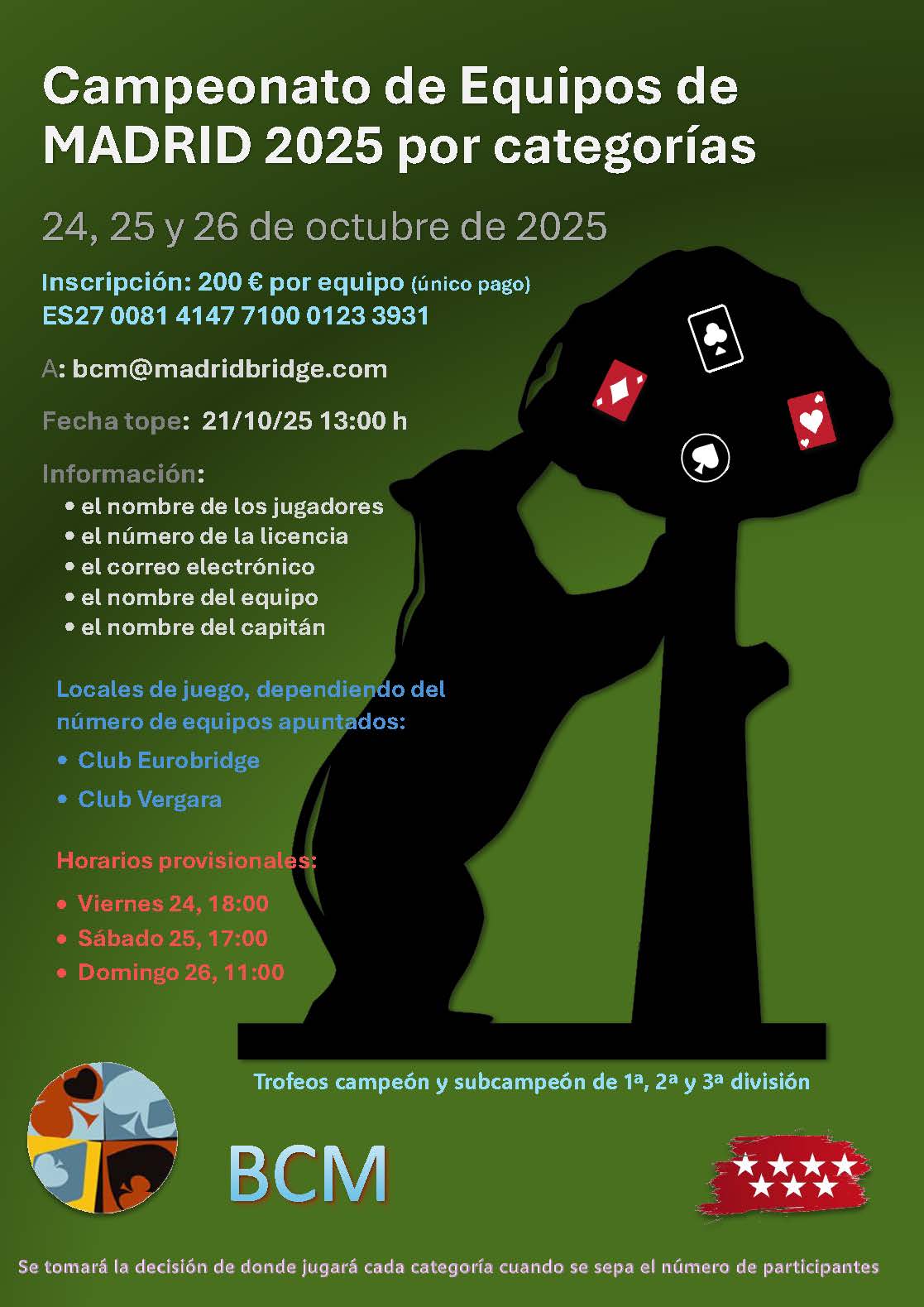 Desde BCM, estamos organizando el Campeonato de Equipos de Madrid. Se jugará dependiendo de la categoría: